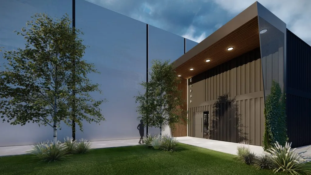 L’extérieur a été modernisé avec des bardages métalliques qui apportent une esthétique contemporaine et épurée, tout en renforçant la cohérence visuelle avec le caractère industriel d’origine. Une annexe a été ajoutée, offrant une extension au bâtiment pour améliorer l’accessibilité et les fonctionnalités.