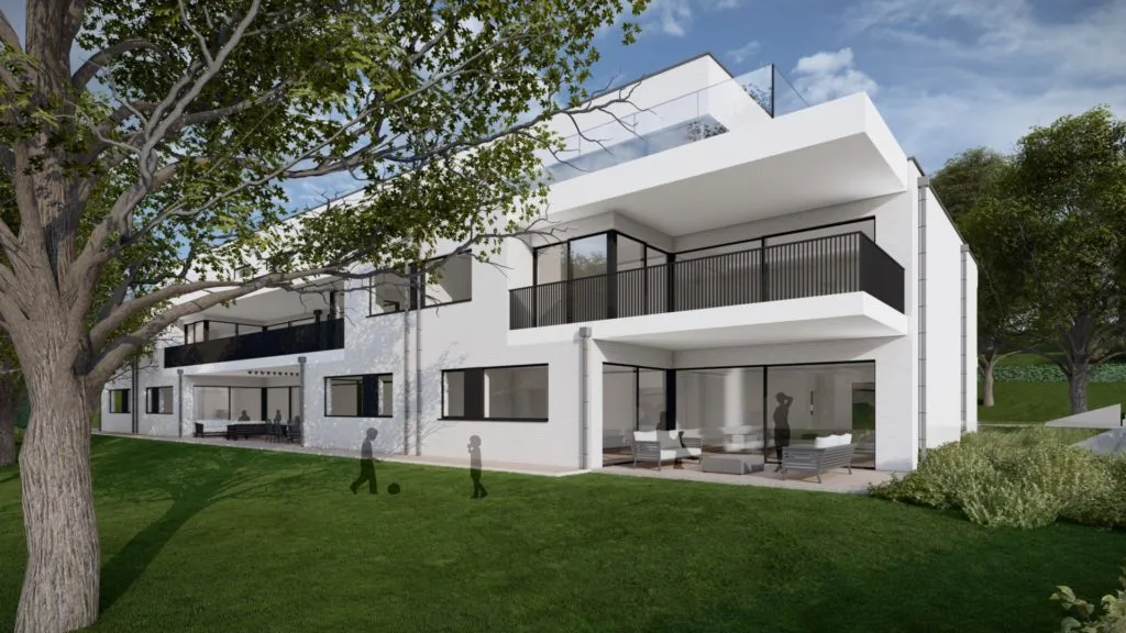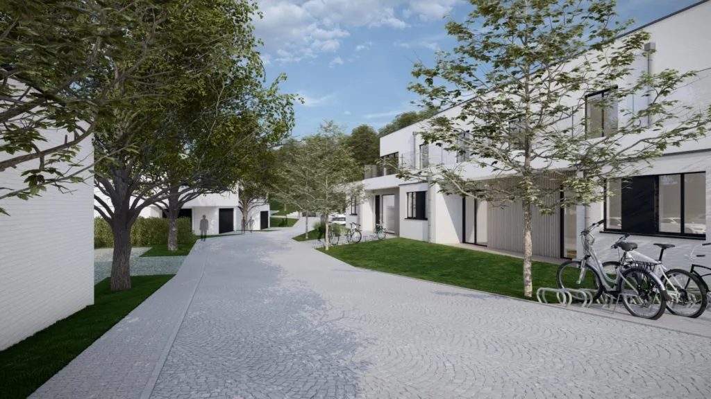Le projet situé le long de la chaussée de Huy prévoit 24 logements répartis sur 8 bâtiments, mêlant appartements et maisons. Intégré dans un environnement rural et boisé, il utilise des matériaux modernes et favorise une gestion écologique des eaux pluviales.